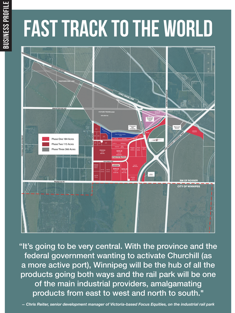 Chris Reiter, senior development manager of Victoria-based Focus Equities, which owns the industrial rail park located adjacent to the Richardson International Airport,says work will begin on the Phase One 2.2-km stretch of track this summer. When the $20-million Phase One rail line installation project is done, with financial support from the National Trade Corridors Fund, rail cars will be able to move on transfer tracks and connect to mainline rail and other modes of transportation with international destinations.